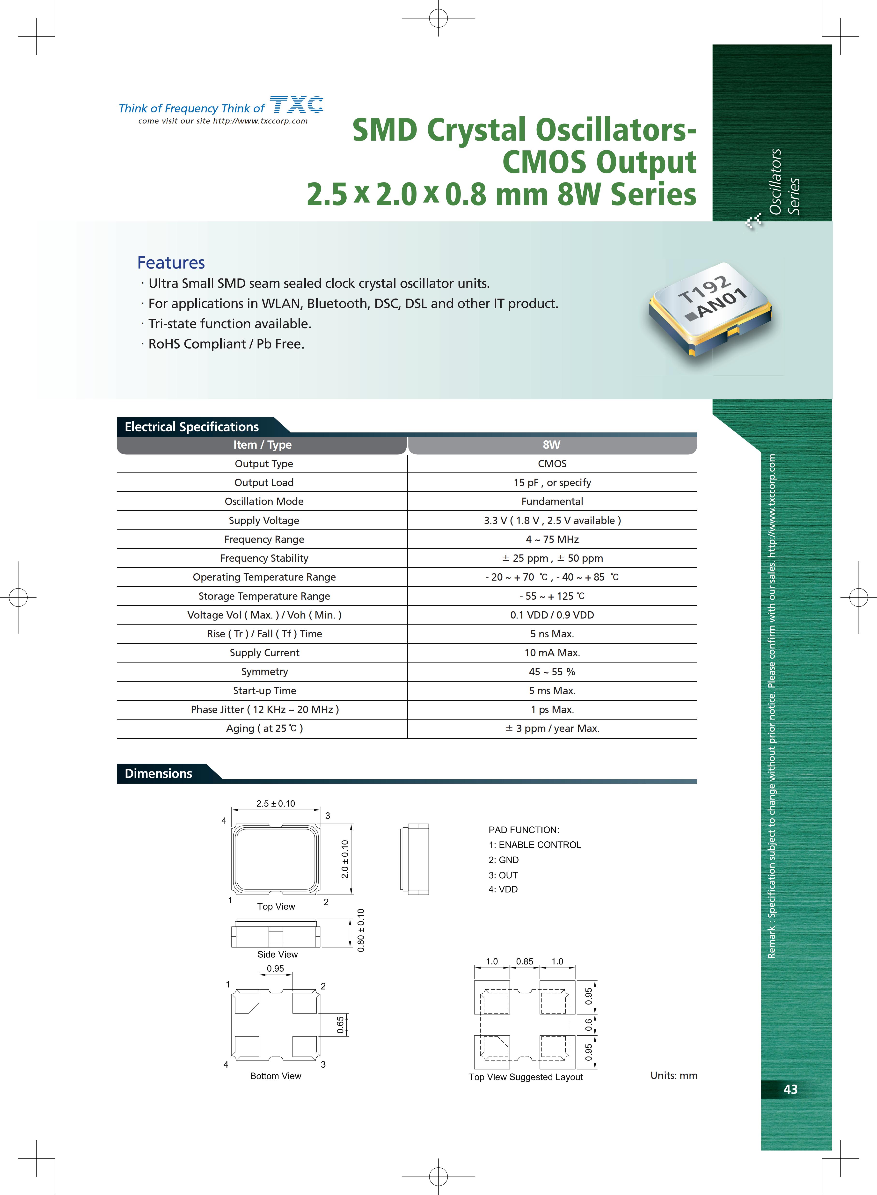 8W1200200112MHz3.3V50PPM